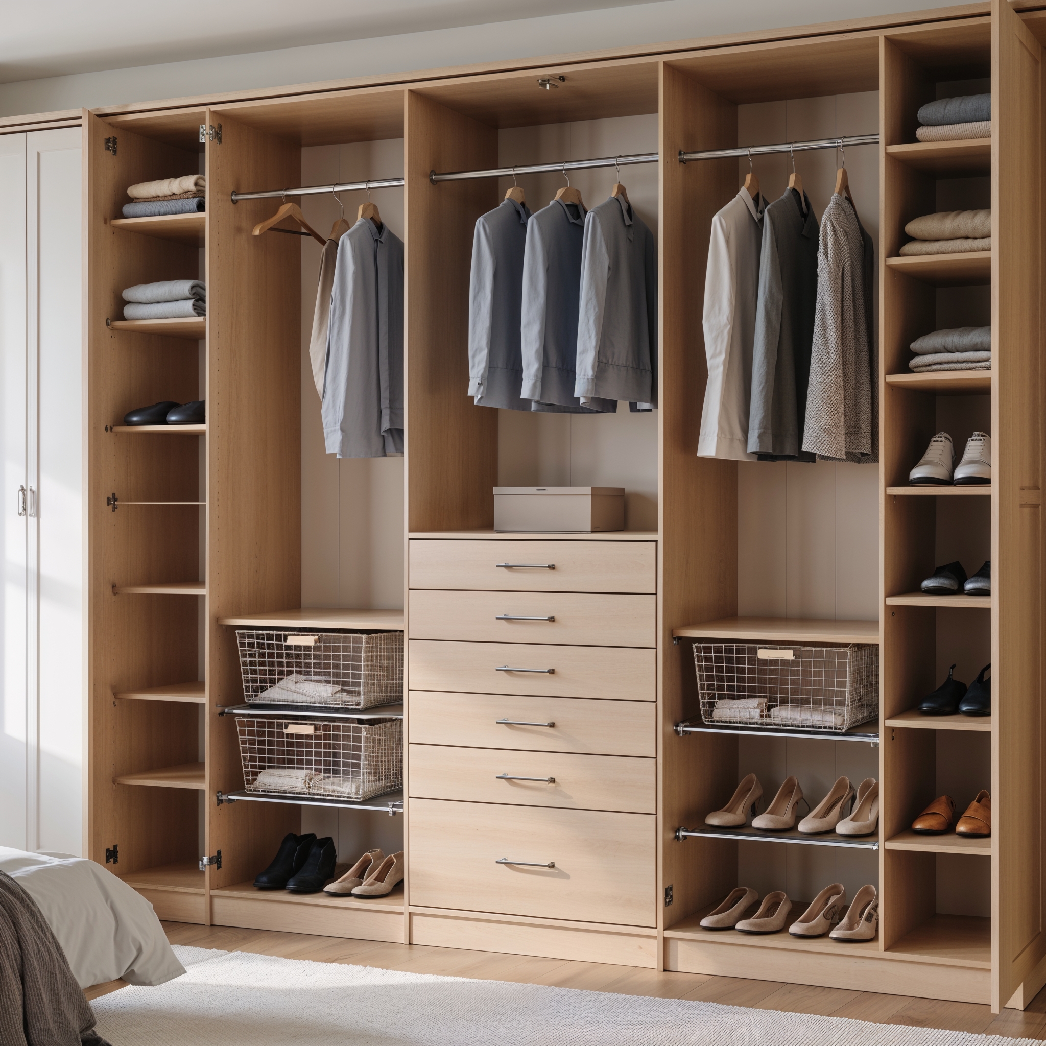 Системы для шкафов-купе включают в себя подвесные, раздвижные и компланарные системы. Для декора фасадов могут использоваться стекла, зеркала, дизайнерские стекла, пленка Оракл, искусственная кожа, ротанг или бамбук. Комбинируем любые материалы.