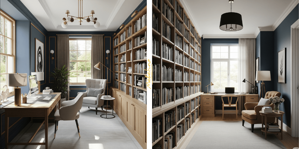 Стильные варианты расстановки мебели в прямоугольном кабинете