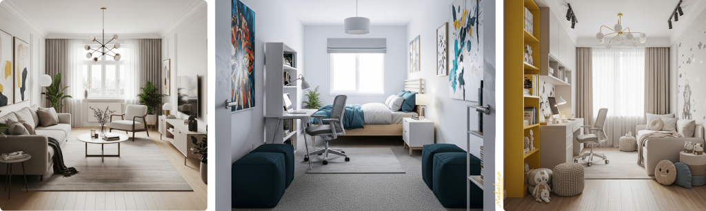 Примеры расстановки мебели в прямоугольных комнатах разного назначения