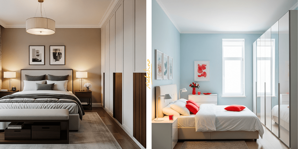 Интересные идеи расстановки мебели в прямоугольной спальне