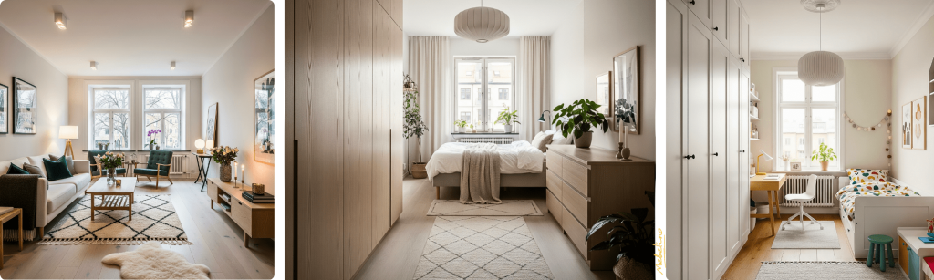 Скандинавский – предпочитает функциональную, но при этом компактную мебель в светлых тонах.