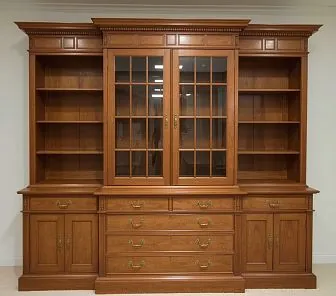 Классический книжный шкаф из массива с витриной и ящиками