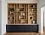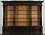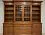 Шкаф из массива дуба, бука или ясеня с центральной витриной и фигурным карнизом с резьбой. Стеклянные дверцы украшены решёткой, по бокам — открытые полки и распашные секции. Нижняя часть — глубокие выдвижные ящики с латунными ручками. Выполняется по индивидуальному проекту, с подбором текстуры и оттенка древесины.