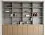 Светлый стеллаж с серым корпусом и фасадами под дерево
