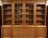 Эффектный шкаф из массива древесины тёплого тона в классическом стиле. Центральная часть — застеклённая витрина с решёткой, по бокам — открытые полки и тумбы с распашными фасадами. Внизу — пять широких выдвижных ящиков с фигурной латунной фурнитурой. Декор: пилястры, резной карниз, филёнки. Изготавливается из массива дуба, бука или ясеня по индивидуальному проекту.