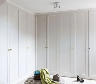 Еще одна причина заказать угловую гардеробную – простое перевоплощение. При изменении интерьера, не придется покупать новый предмет обстановки. Достаточно будет просто заменить фасад или преобразить его (к примеру, покрасить, добавить зеркальные вставки).