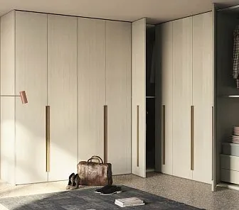 Лаконичность и оригинальный дизайн фасадов делает эту систему хранения подходящей для установки в любой комнате. Нейтральный оттенок фасадов МДФ в эмали гармонично сочетается как со светлым, так и с темным интерьером. 4 большие секции со створками-купе позволяют расположить верхнюю одежду, обувь и аксессуары. Изготавливается по индивидуальному замеру.