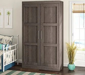 Высокая мебель для гостиной или спальни, единственным украшением которой являются длинные врезные ручки. Глухие створки и большие габариты позволяют оборудовать в шкафу гардероб. Шкаф изготавливается из массива дуба с покрытием эмалью. Что позволяет изменить цвет мебели под любой дизайн помещения.