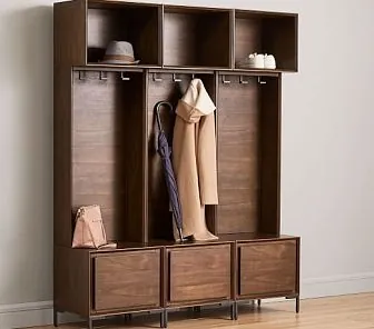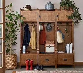 Впечатляющее, ни с чем не сравнимое совершенство натурального дерева. Высокий шкаф с прямым фасадом, штанга, крючки, верхняя антресоль и обувница с мягкой поверхностью из массива бука. Модель выглядит стильно и дорого, она гармонично впишется в обстановку, добавив ноту тепла натуральных природных материалов. Перед заказом нужно провести замер прихожей, производство - по уникальным размерам.