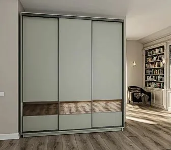 Ультралегкий, воздушный шкаф идеально подойдет для просторных минималистичных интерьеров в хай-тек и сканди. Трехстворчатое зеркало-купе удобно для создания образов в полный рост. Зона хранения оборудована штангой, ящиками, нижними секциями под туфли, антресольной зоной. Корпус – ламинированная древесно-стружечная плита «Эггер» (Австрия), система закрытия и фурнитура – «Blum». Возможно изготовление в других материалах и различных размерах.