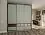 Угловая модель с комбинированными дверями шкафа (с раздвижной / распашной конструкцией). Оборудована подсветкой. Может дополняться антресолью, тумбами, комодами.