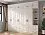 Система хранения “под потолок” включает в себя две центральные секции со штангами, нишами для обуви и выдвижными ящиками, а также боковые пеналы. Белый цвет фасадов МДФ в эмали визуально расширяет пространство спальни или гардеробной. Для большего удобства модель оборудована фронтальной диодной подсветкой. Выпускается штучно, под уникальные размеры.