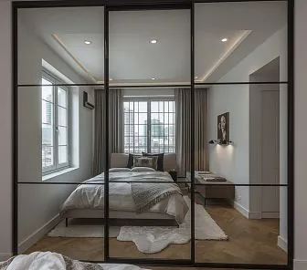 - Шкафы-купе с зеркальными фасадами – расширяют пространство и добавляют света в комнату. Подойдут для небольших помещений, визуально увеличивая их размер.