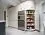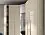 Вместительная и функциональная система хранения состоит из встроенного высокого шкафа и маленькой гардеробной комнаты, что позволяет максимально рационально использовать пространство. Фронтальная часть шкафа закрывает даже боковые радиусные полки, может быть выполнен из массива или МДФ в шпоне или плёнке. Гардеробная закрывается прозрачными тонированными раздвижными дверями.