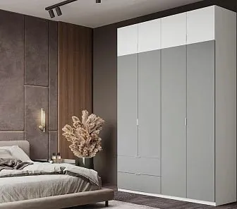 Воплощение лаконичного минимализма. Внешне зоны хранения и антресоли выделены светлым и серым оттенками, шкаф дополнен выдвижными ящиками. Сдержанный, технологичный дизайн подойдет для современных интерьеров, а компактные размеры позволяют расположить изделие в любом удобном месте. Фасады выполнены из эмалированного МДФ. Перед заказом необходимо вызвать нашего дизайнера-замерщика.