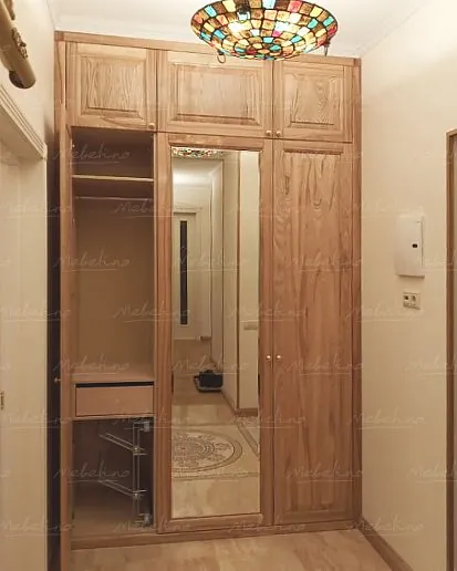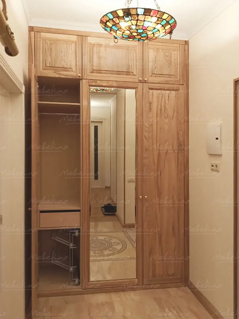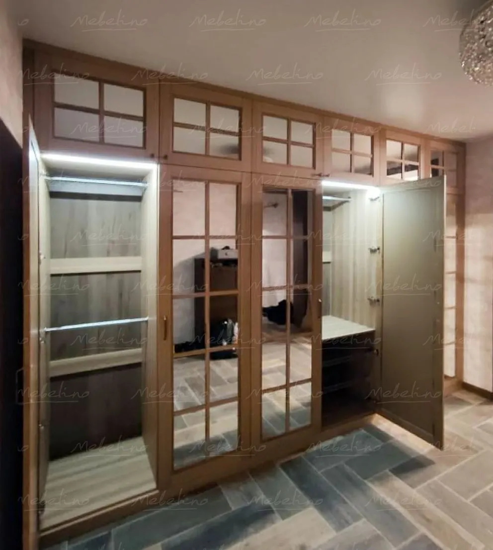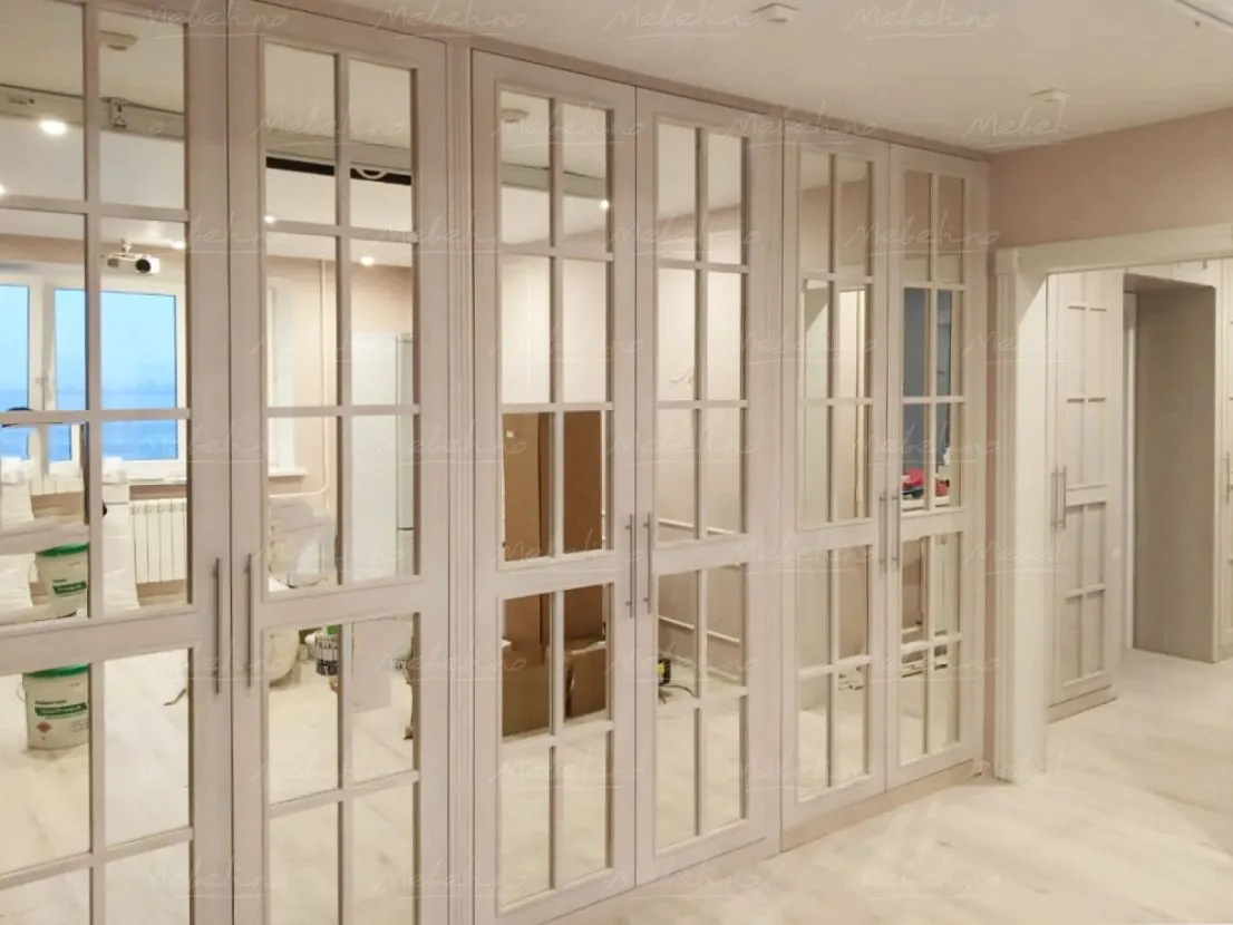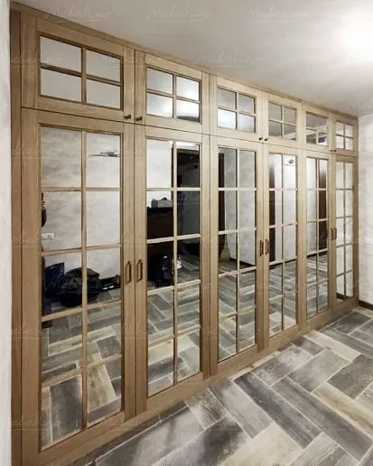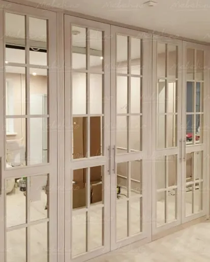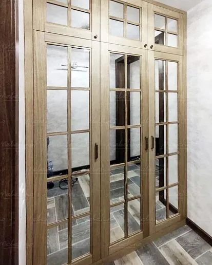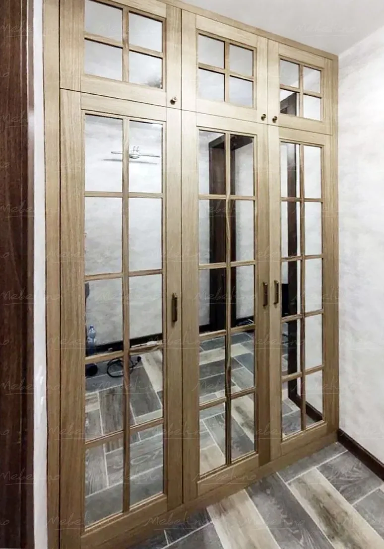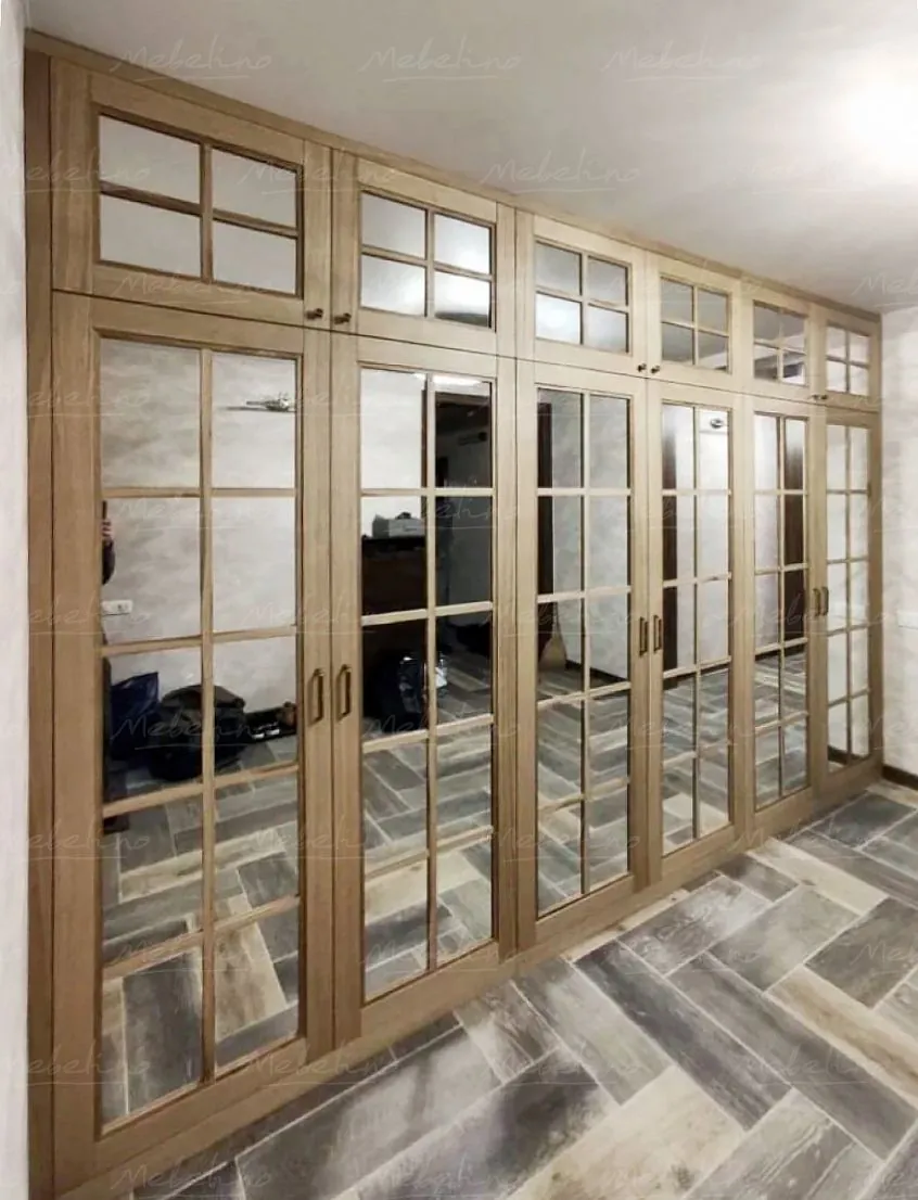 Встроенные распашные шкафы из массива с зеркальными фасадами