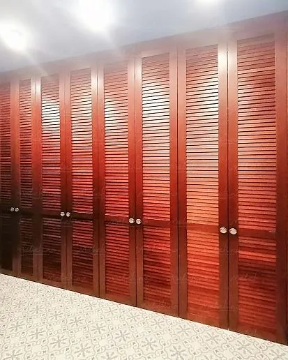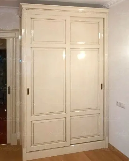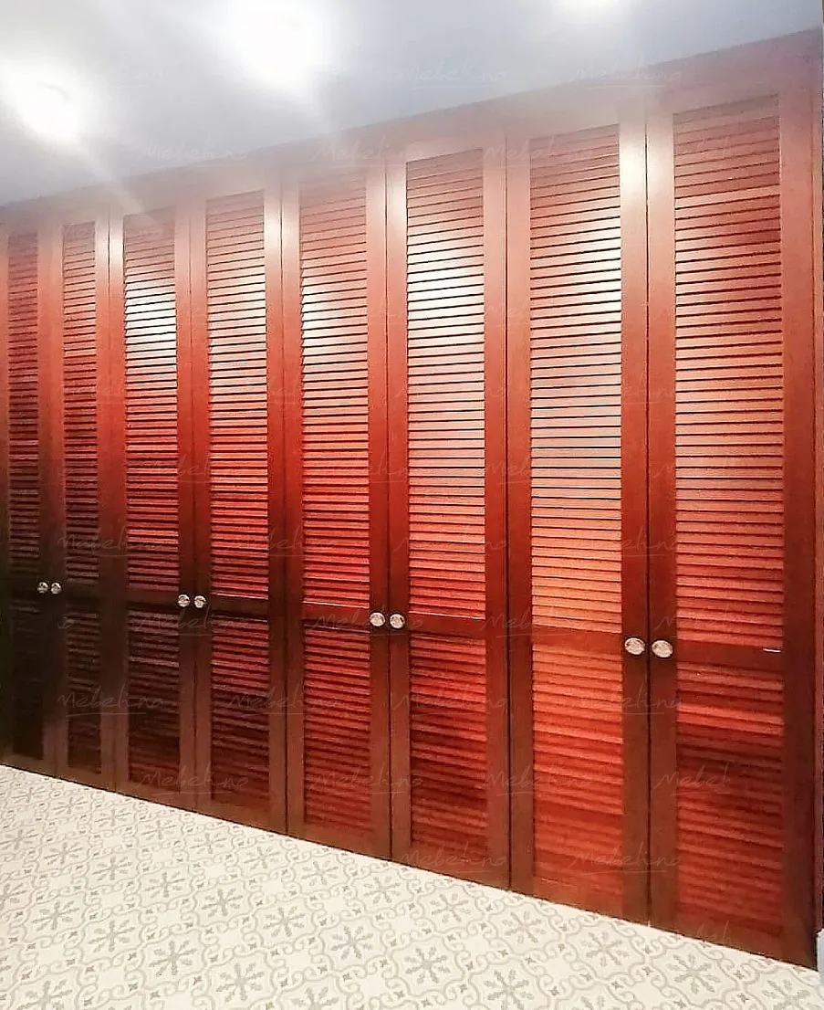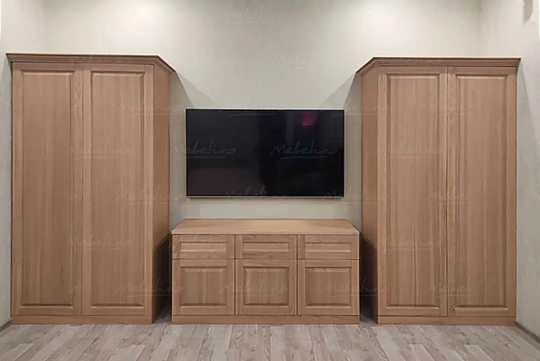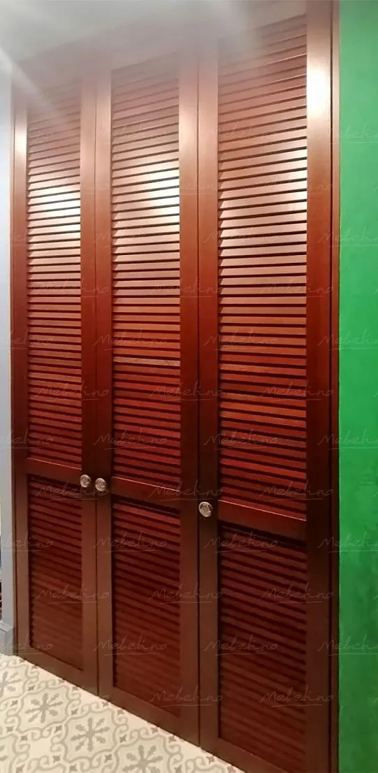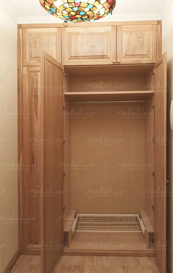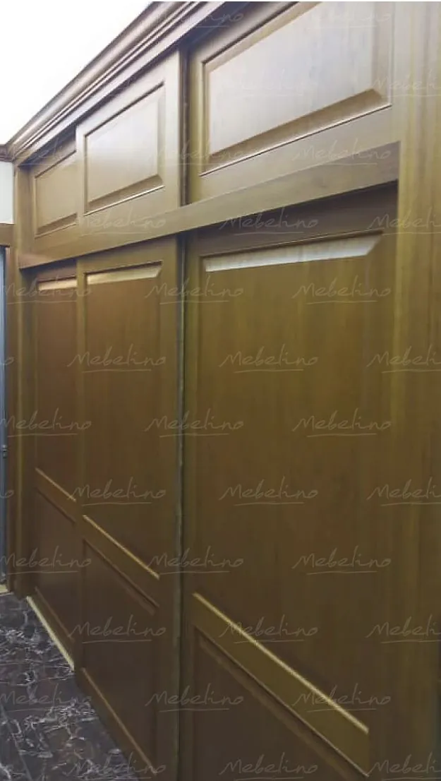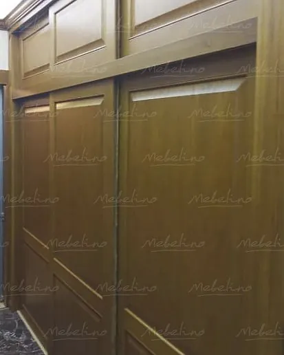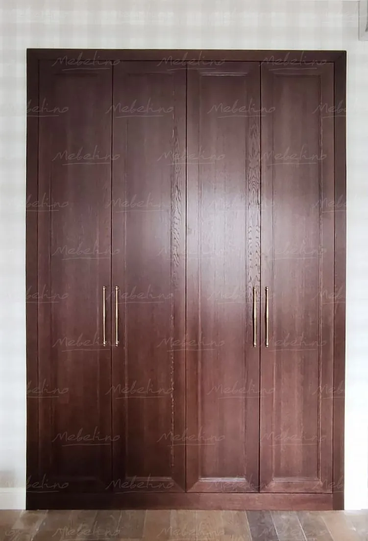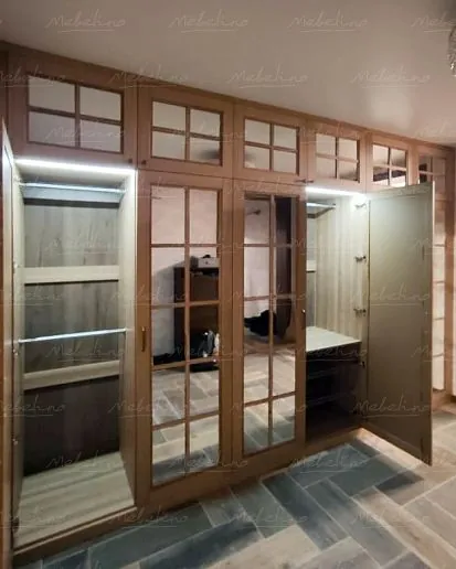 Встроенные распашные шкафы из массива с зеркальными фасадами
