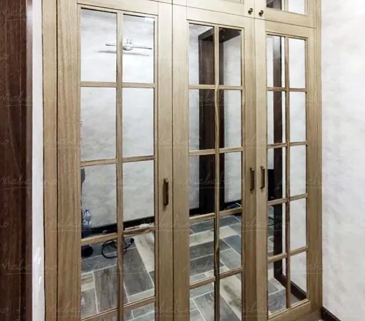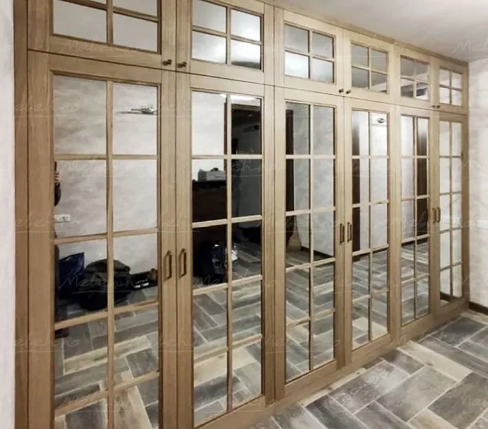 Встроенные распашные шкафы из массива с зеркальными фасадами