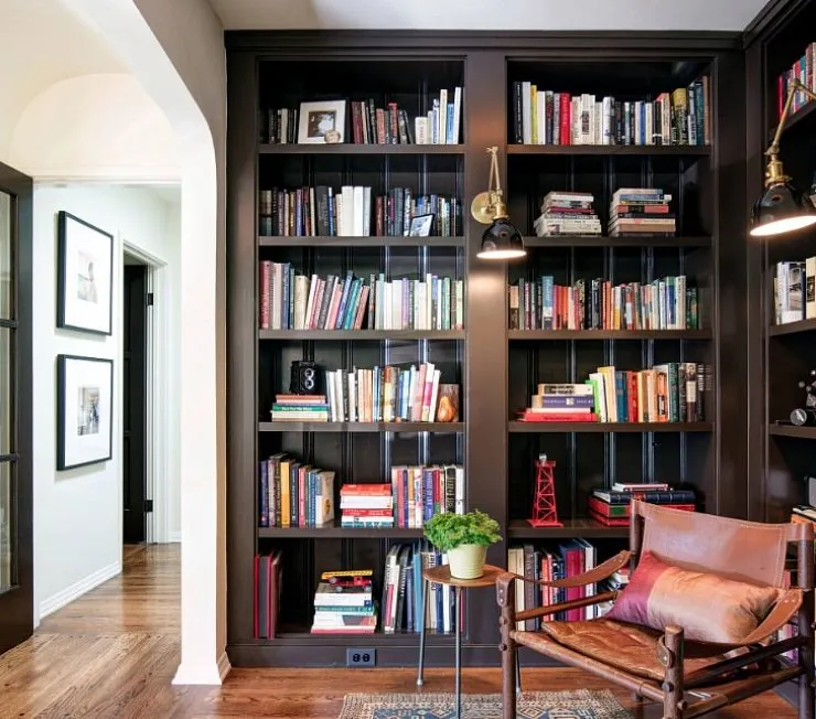Мебельный комплект встроенной библиотеки. Изготавливается под заказ по размерам комнаты. Мебель предназначена для установки в углу библиотеки. Основа комплекта книжные шкафы в стиле прованс с открытии полками.