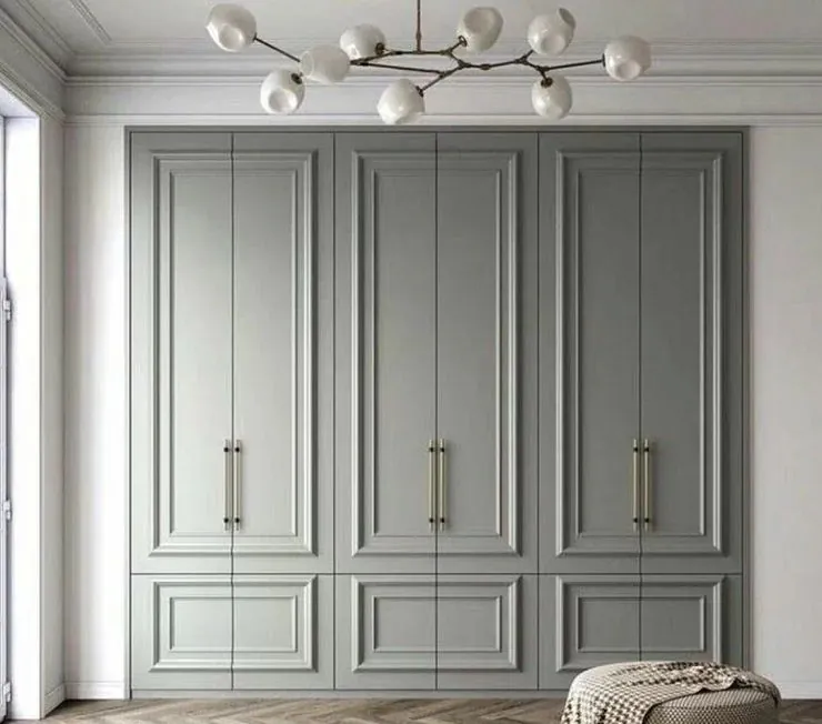 Встраиваемая в нишу система хранения с 3 секциями для одежды и отдельно - нижними для обуви. Впечатляющие рельефные фасады выполнены из МДФ в матовой эмали. Элегантный дизайн идеально подходит для классических, утонченных интерьеров. Фурнитура в классическом стиле - от Blum. Изготовление - по размерам ниши для установки.