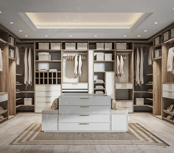 Большая гардеробная комната из дерева с «островом» G108