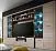 Корпусная мебель на всю стену с закрытыми стеклом витринами и распашными шкафами. Стенка для большой гостиной с нишей для большого телевизора. Полки витрины оборудованы подсветкой. Тумба под телевизор глубже шкафов и выступает вперёд, что даёт больше места в выдвижных ящиках тумбы. Вверху мебельную композицию соединяет подвесной стеллаж в котором есть очень длинная полка. Гарнитур отлично сочетается со стеновыми панелями. Изготавливается на заказ из массива дерева или из МДФ в шпоне.