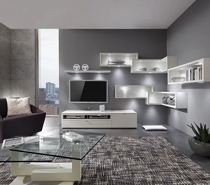 Белая угловая гостиная с подсветкой, сделана на заказ G299