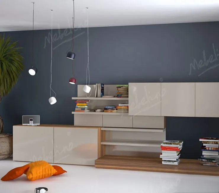 Мебель из тумбы, шкафчиков и полок подходит для обустройства не только залов, но также спален и кабинетов