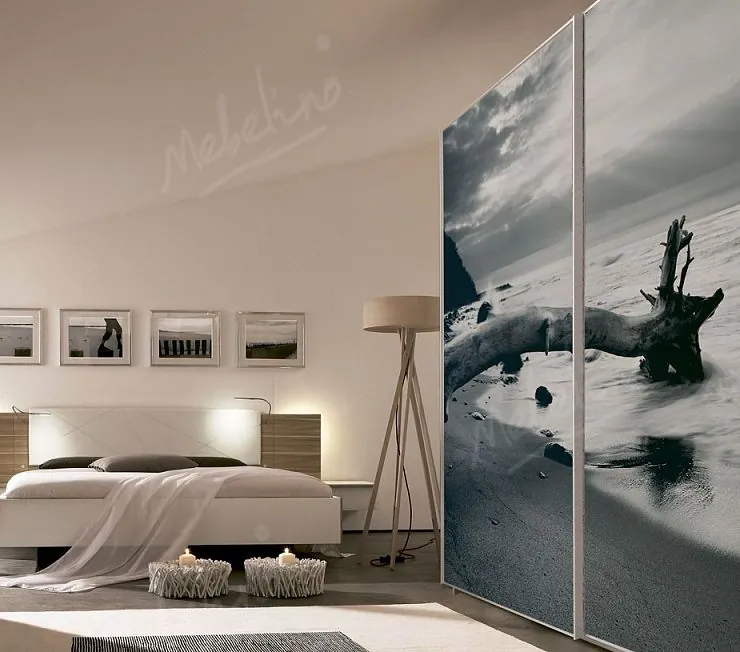 Двухдверный шкаф-купе с черно-белой фотопечатью PC404