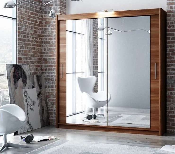 Востребованная модель среди поклонников экостиля, high-tech, минимализма и других современных дизайн-трендов. Материал корпуса – премиум-МДФ в шпоне натурального дуба с глубокой текстурой. Широкие зеркала на створках дверей-купе визуально увеличивают пространство комнаты и удобны для примерки одежды. Шкаф производится только под заказ, по индивидуальным размерам.