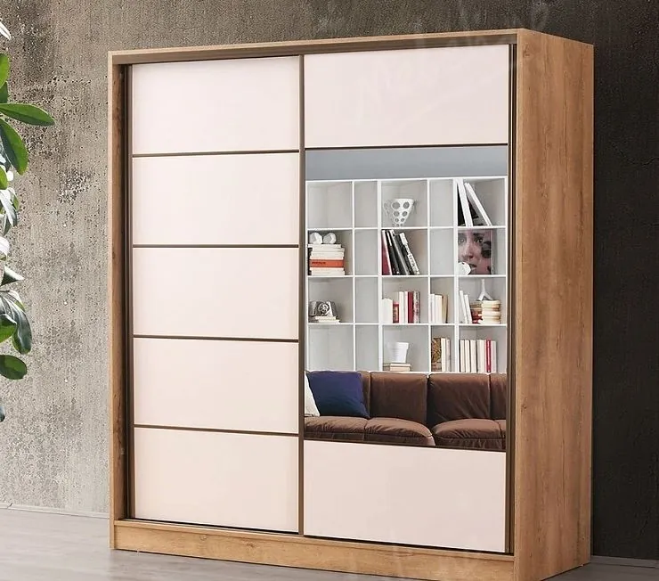 Компактная мебель с комбинированным фасадом, что идеально подходит для маленьких комнат с низкими потолками