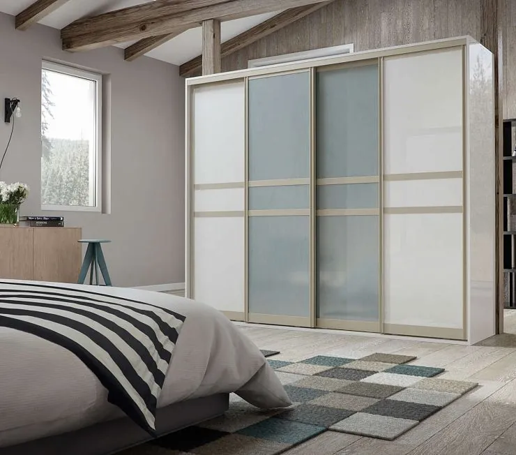 Предмет обстановки для обустройства спальни с креативным сочетанием глухих и полупрозрачных створок