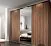 Трехдверная система хранения в варианте “под потолок” с фронтальной подсветкой. Комбинированные фасады: премиум-МДФ в пленке под дерево сочетается с зеркальной центральной створкой. Модель включает функциональное внутреннее наполнение: вместительные секции с открытыми полками, штангами под одежду, блоком выдвижных ящиков и нишами под обувь.Эксклюзивное производство на заказ.