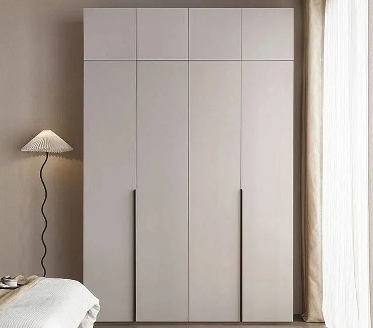 Стильный, компактный, современный - такой шкаф обязательно найдет свое место в вашей гостиной или спальне. Классическое гардеробное наполнение включает секцию со штангой, нижние выдвижные ящики, открытые полки и антресоли. Фасады - с ручками и пуш-системой, изготовлены из МДФ в эмали пастельного оттенка. Для заказ требуется выезд дизайнера-замерщика.