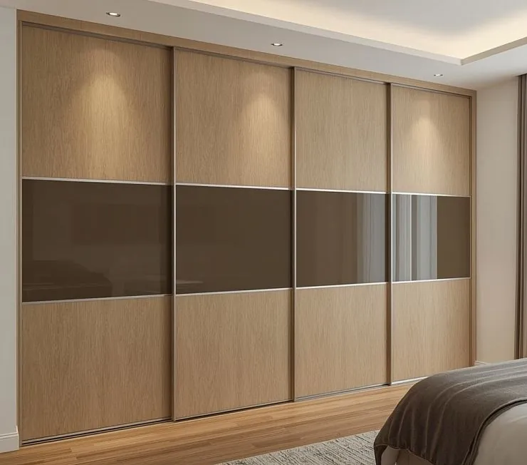 Шкаф-купе Linea — идеальное решение для современных интерьеров в стиле минимализм или модерн. Фасады выполнены из светлого дерева с контрастными стеклянными вставками цвета мокко, разделёнными алюминиевым профилем. Система скольжения бесшумна и долговечна.
