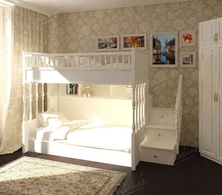 Набор отличается компактными габаритами, вместительной системой хранения и утонченными резными элементами.