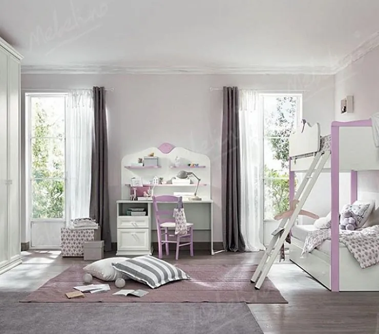 Комплект изготовлен под заказ для клиента Москвы, из МДФ, окрашен в белый цвет с лавандовыми вставками.