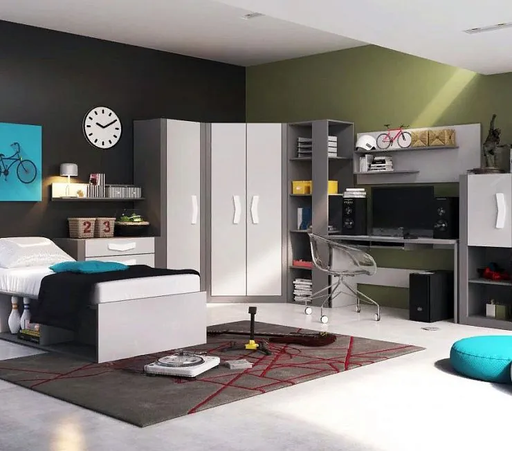 Современный, легкий, практичный дизайн и качественные, долговечные материалы и фурнитура австрийского производства - такая мебель заслуживает вашего внимания. Гарнитур включает стенку с угловым шкафом и комбинированными секциями для хранения, а также кровать и тумбочку с выдвижными ящиками. Светлая гамма подойдет для небольших помещений, визуально увеличивая пространство. Выпускается только на заказ, в цветах и размерах на ваш выбор.