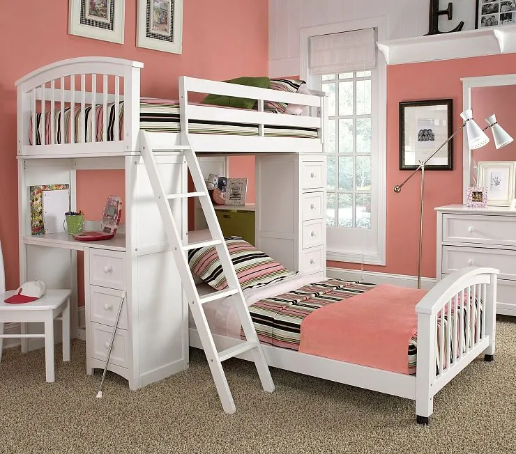Универсальный белый гарнитур, который подойдет для комнаты двух детей. Довольны останутся как мальчики, так и девочки: практичная мебель дополнена колонной выдвижных ящиков, сочетает функционал двухъярусной кровати и учебной зоны. Изготавливается из австрийского ЛДСП премиального качества. Детская производится в эксклюзивных размерах и требует выезда специалиста для замера.