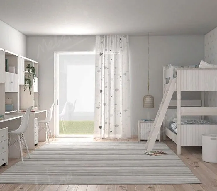 Функциональный комплект, включающий стенку с 2-мя рабочими зонами, двухярусную кровать с лестницей и тумбы