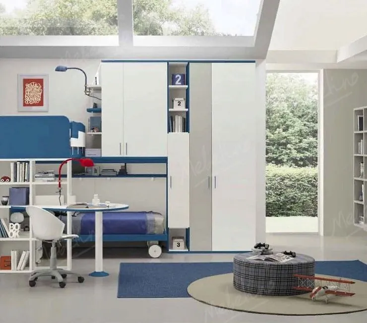 Комплект для 2-х деток с распашными шкафами, кроватями, стеллажами с открытыми полками и столом
