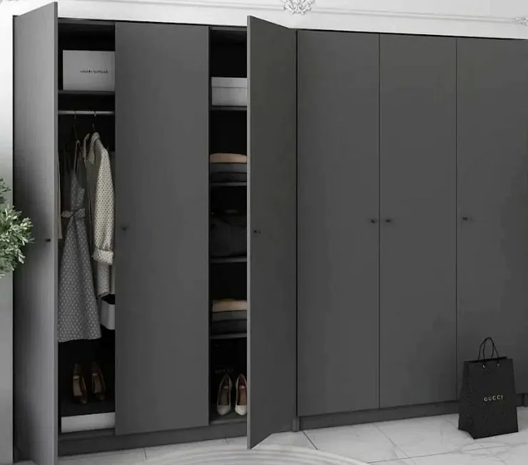 Строгая геометрия, лаконичный внешний вид, нейтральная гамма серого – все в этом встраиваемом шкафе указывает на его практичность и функциональность. Внутреннее наполнение включает зону со штангой для гардероба, отдельные зоны для белья, нижние полки для хранения обуви. Минималистичный корпус - из премиального австрийского ЛДСП «Egger», ручки, петли и направляющие от «Blum». Встраиваемый шкаф требует предварительного замера ниши.