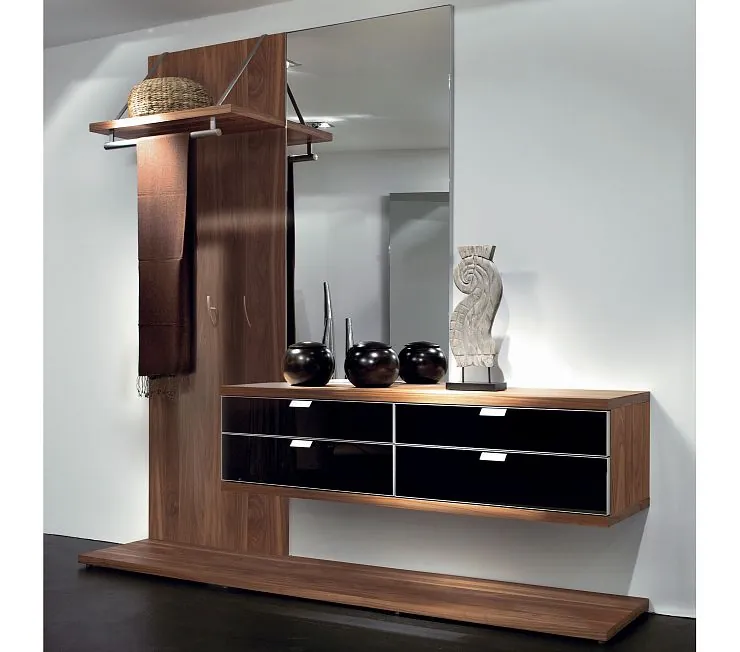 Прихожая с открытыми крючками и парящей антресолью Е103