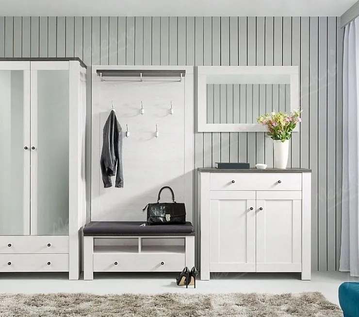 Корпус- МДФ в эмали матовой, ЛДСП "Egger"; фасады - МДФ в эмали матовой, зеркало.