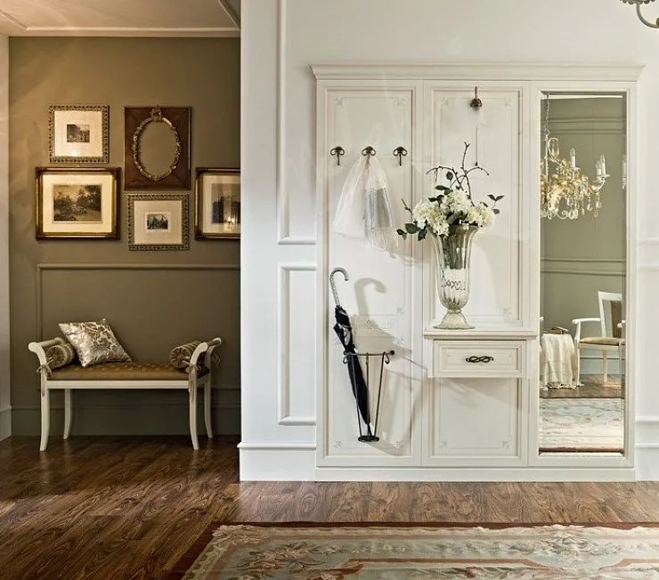 Утонченность и изящество, воплощенное в качественной мебели. За фрезерованными фасадами 18 века– современная вместительная и функциональная система хранения одежды, обуви и аксессуаров. Ажурные ручки, стильная кованая корзина для зонтов, очаровательный выдвижной ящичек: все продумано, создает неповторимую атмосферу и отлично дополняет классический стиль обстановки. Изготавливается из МДФ в матовой эмали. Прихожая заказывается под индивидуальные параметры помещения.