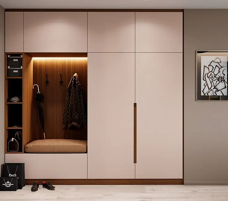 Эксклюзивная прихожая. Покупатель указал ширину, высоту и глубину товара, а также материал изготовления, дизайнерское и цветовое исполнение. Встроенная прихожая в комплекте с гардеробным шкафом и антресолями. По цене фабрики. Узнавайте условия заказа у менеджеров.