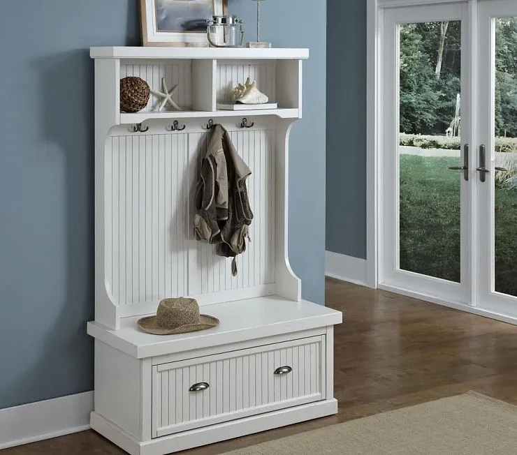 Маленькая белая прихожая. Вверху две вместительные полки, внизу вместительный выдвижной ящик. Материал корпуса – ламинированная древесно-стружечная плита "Egger", фасадов - МДФ в эмали.