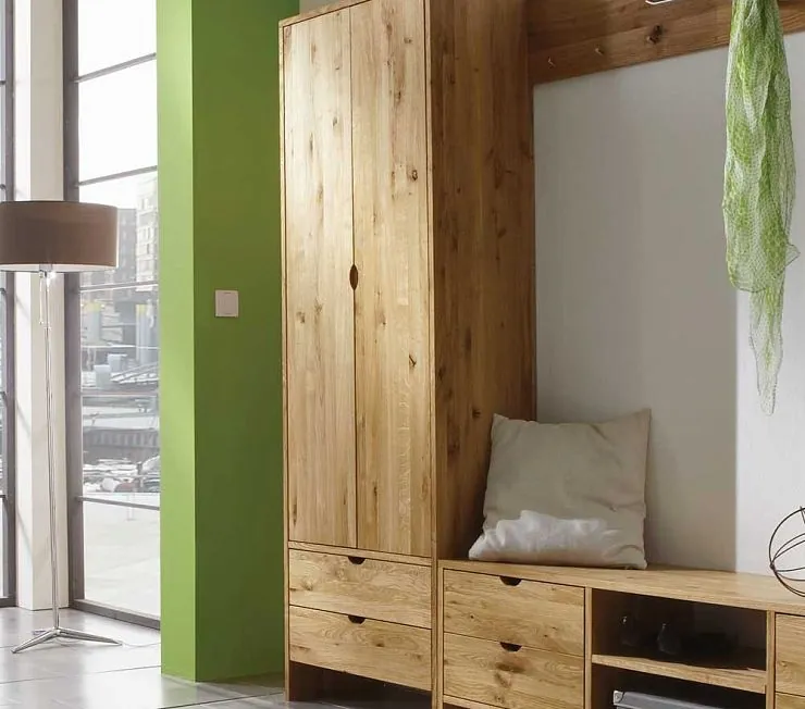 Маленький, но функциональный комплект из распашного шкафа, выдвижных ящиков, открытых полок и крючков для аксессуаров. Доступен в разных цветах и размерах.