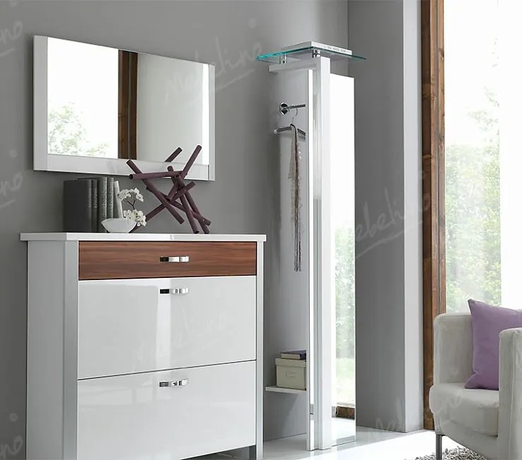 Лаконичная прихожая из ламинированной мдф с зеркалом для небольших комнат PC574