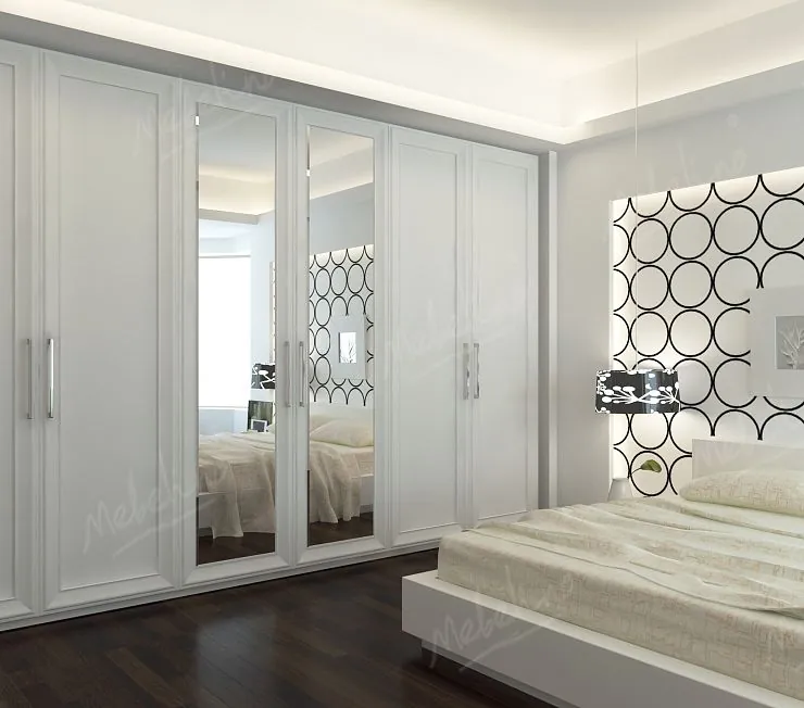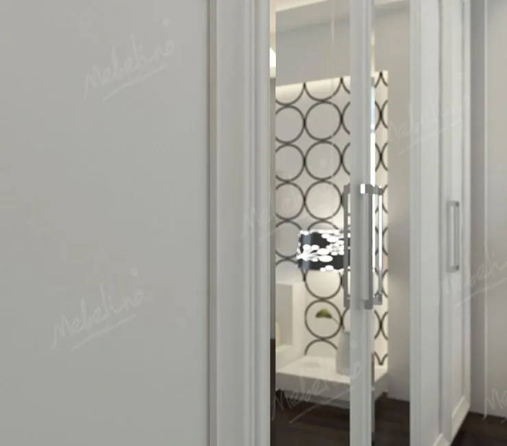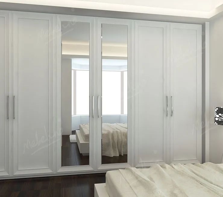 Корпус- ЛДСП "Egger" ; фасады - МДФ в эмали матовой, зеркало серебро.